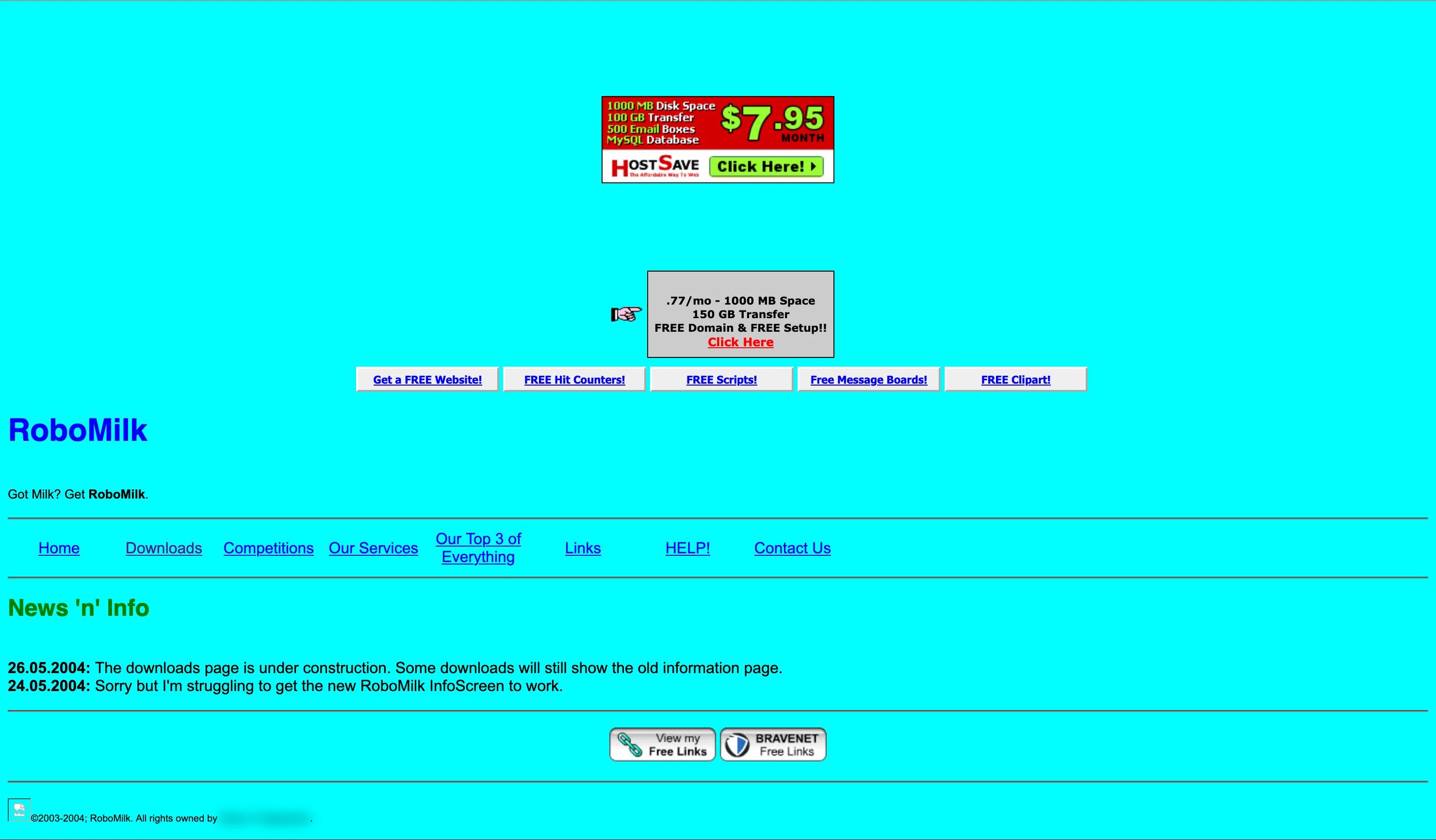 Wow… that is obnoxiously blue, huh. This is also the first appearance of the “robomilk” moniker, my first online username and one survived to this day by my still-active Last.fm and Wikipedia accounts.